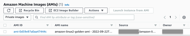 - Trong console Amazon EC2, chọn Images, sau đó chọn AMIs. Xác minh rằng AMI đã được tạo.