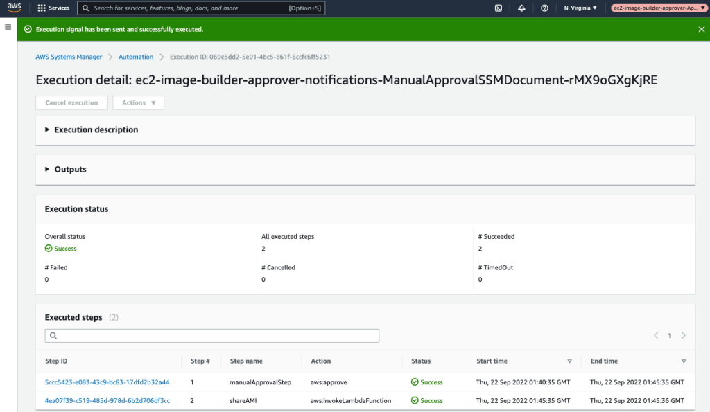 - Sau khi phê duyệt bước thủ công, bước thứ hai được thực thi, chia sẻ AMI với tài khoản đích.