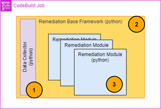 Giải pháp cuối cùng bao gồm remediation base framework và một hoặc nhiều remediation modules. Tất cả các remediation modules được chạy tuần tự để giảm thiểu rủi ro của các tác dụng phụ có thể xảy ra hoặc vấn đề throttling đối với AWS service APIs. Cách tiếp cận này cũng tạo điều kiện kiểm soát và truy xuất nguồn gốc tốt hơn trong trường hợp xảy ra lỗi hoặc hành vi không mong muốn trong quá trình remediation vì các hành động cũng được ghi lại tuần tự.