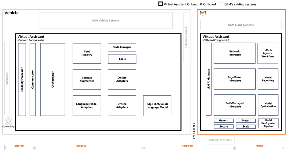 Nhận thấy các yêu cầu và năng lực khác nhau của các nhà sản xuất ô tô, trước tiên Amazon cung cấp ba lộ trình riêng biệt để tích hợp các trải nghiệm trong xe sử dụng GenAI. Giải pháp do Amazon quản lý mang đến cách tiếp cận trọn gói giúp triển khai nhanh với chi phí bảo trì tối thiểu. Giải pháp được quản lý toàn diện này đảm nhận vận hành hệ thống, cập nhật và mở rộng quy mô, cho phép các nhà sản xuất nhanh chóng đưa các khả năng AI tiên tiến vào xe đồng thời tập trung vào các mục tiêu kinh doanh cốt lõi.