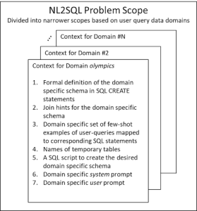 Quy trình giải pháp thu hẹp không gian lược đồ tổng thể thành miền dữ liệu mà truy vấn của người dùng nhắm đến. Mỗi miền dữ liệu tương ứng với tập hợp các cấu trúc dữ liệu cơ sở dữ liệu (bảng, chế độ xem, v.v.) thường được sử dụng cùng nhau để trả lời một tập hợp các truy vấn người dùng có liên quan, cho một ứng dụng hoặc miền doanh nghiệp. Giải pháp sử dụng miền dữ liệu để xây dựng các câu lệnh đầu vào (prompt) cho LLM.