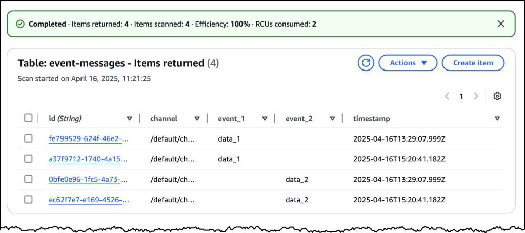 Dưới đây là tất cả các message đã được lưu trong DynamoDB!