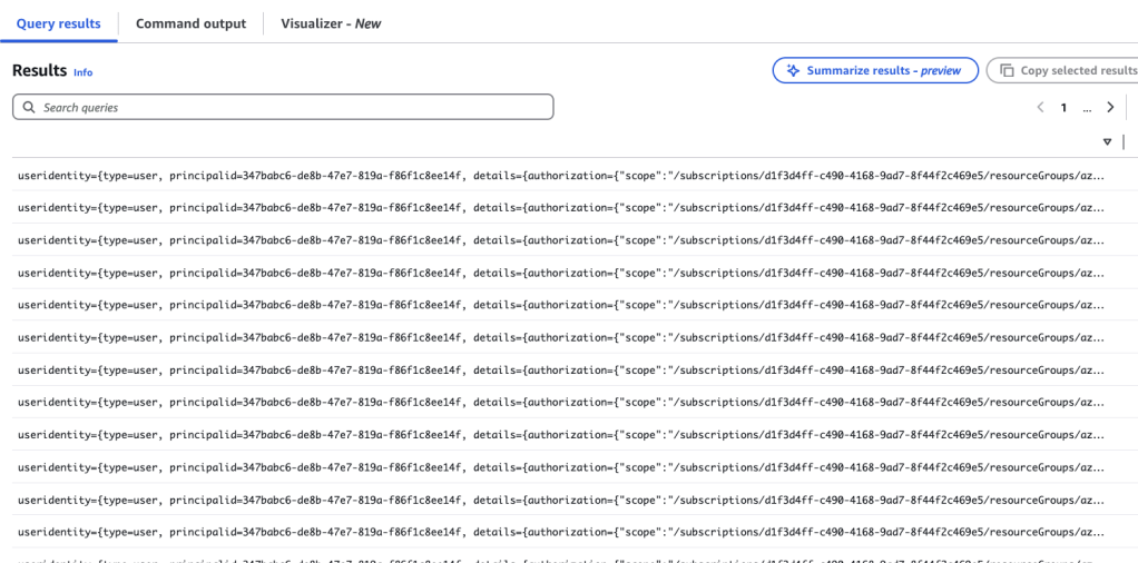 Để xác minh xem nhật ký kiểm tra Azure có khả dụng trong kho dữ liệu AWS CloudTrail Lake hay không, hãy sử dụng truy vấn mẫu bên dưới để truy vấn kho dữ liệu sự kiện CloudTrail Lake của bạn theo các hướng dẫn sau: Chạy truy vấn và lưu kết quả truy vấn