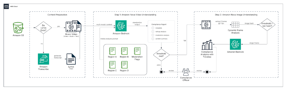Hình 1: Sơ đồ kiến trúc cho tuân thủ nội dung sử dụng Amazon Nova