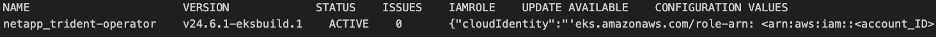 Hình 9: Lệnh eksctl lấy Trident operator add-on cho một cụm được chỉ định
