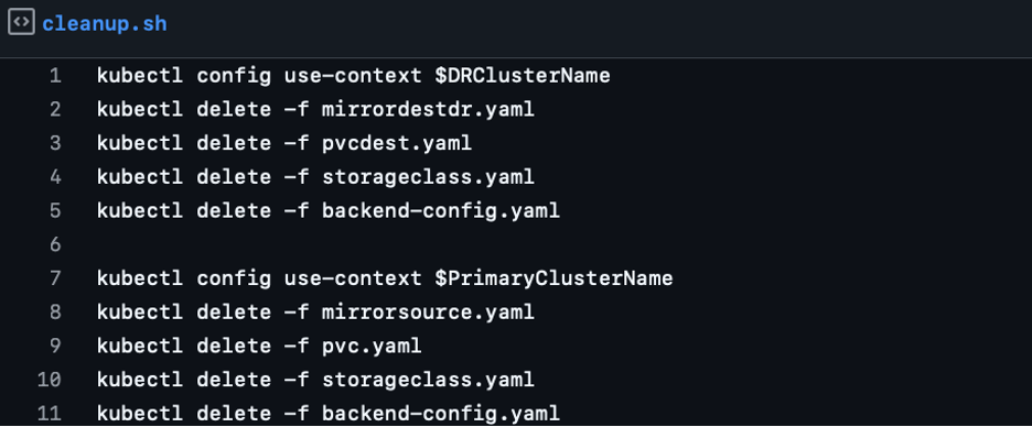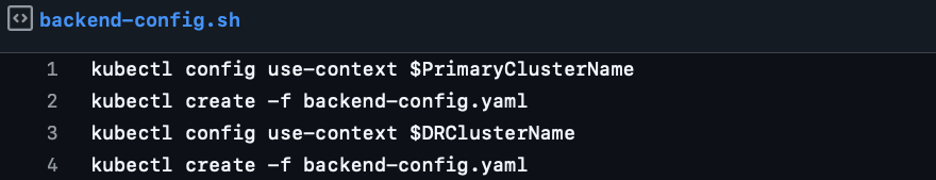 Hình 12: Các lệnh kubectl tạo cấu hình backend sử dụng backend-config.yaml cho cả hai cụm chính và DR