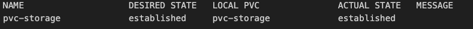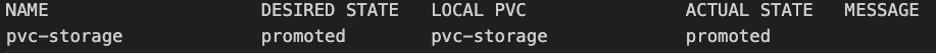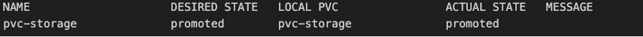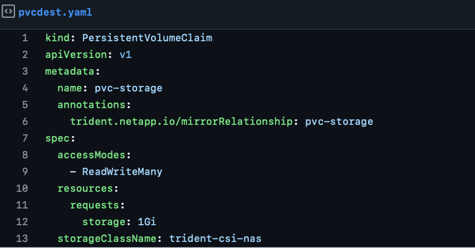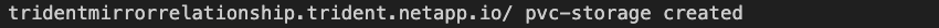 Bước cuối cùng là tạo PVC trên cụm EKS DR và bắt đầu sao chép. Đảm bảo bạn cập nhật chú thích (annotation) metadata TridentMirrorRelationship với tên TMR được thiết lập trong ví dụ trước. Trong ví dụ sau (như được hiển thị trong hình 25), nó được đặt thành pvc-storage.