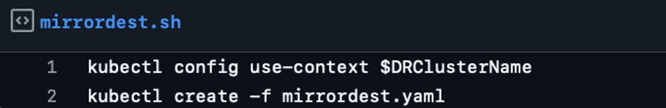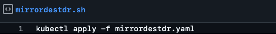Hình 23: Các lệnh kubectl tạo đích nhân bản sử dụng mirrordest.yaml