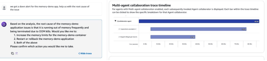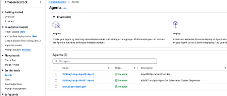 - Tác nhân Amazon Bedrock cho ArgoCD (Amazon Bedrock agent for ArgoCD) – Quản lý các biện pháp khắc phục dựa trên GitOps thông qua ArgoCD, xử lý hoàn tác (rollback), tối ưu hóa tài nguyên và cập nhật cấu hình.