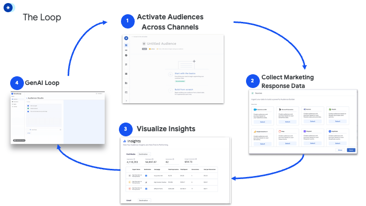 Tiếp thị theo vòng lặp hợp nhất (Unified-loop marketing) cho phép các nhóm bắt đầu xây dựng phân khúc đối tượng (audiences) dựa trên nguồn chân lý duy nhất (single source of truth) của họ trên nhiều kênh, đồng thời học hỏi từ các chiến dịch này để cải tiến (iteration) nhanh hơn và có thông tin đầy đủ hơn (more informed). Những thông tin chi tiết (insights) này — khi được gửi trở lại kho dữ liệu đám mây (data cloud) Amazon Redshift — sẽ mở khóa tiềm năng to lớn cho AI trong việc khuếch đại (amplify) các nỗ lực tiếp thị của bạn.