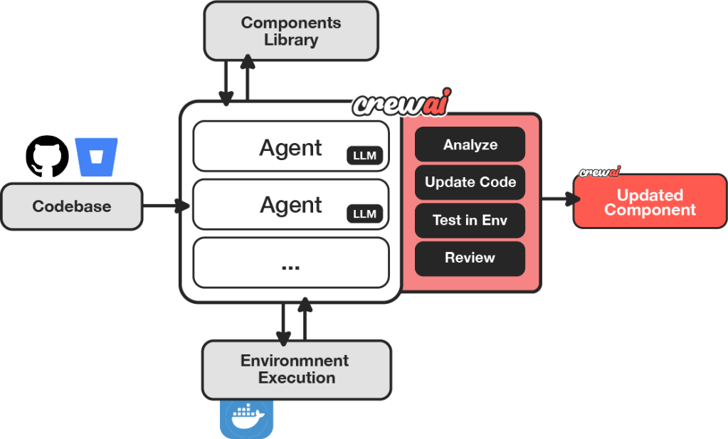 Hãy xem xét một trường hợp sử dụng phát triển phần mềm. Các AI Agent có thể tạo, đánh giá và cải thiện mã, chuyển trọng tâm của các kỹ sư phần mềm (software engineers) từ việc viết mã thông thường sang các thách thức thiết kế phức tạp hơn. Ví dụ, đối với kho lưu trữ Git (git repository) của CrewAI, các yêu cầu kéo được đánh giá bởi một tập hợp các Agent CrewAI, những người đánh giá mã dựa trên tài liệu mã (code documentation), tính nhất quán của việc triển khai (consistency of implementation), và các cân nhắc về bảo mật (security considerations).