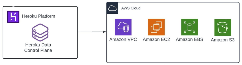 Nhóm Heroku Data điều hành nhiều control plane để quản lý tài nguyên khách hàng. Khi một khách hàng tạo add-on Heroku Postgres, control plane gửi các API request tới AWS để tạo VPC, EC2 instances, Amazon Elastic Block Store (Amazon EBS) volumes, và Amazon Simple Storage Service (S3) paths theo yêu cầu gói add-on.
