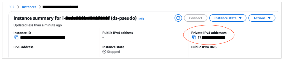 12. Trên bảng điều khiển Amazon EC2, điều hướng đến trang chi tiết phiên bản và sao chép địa chỉ IP riêng.