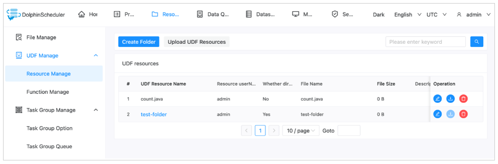 Đảm bảo các job script được tải lên từ Amazon S3 có sẵn trong DolphinScheduler Resource Center