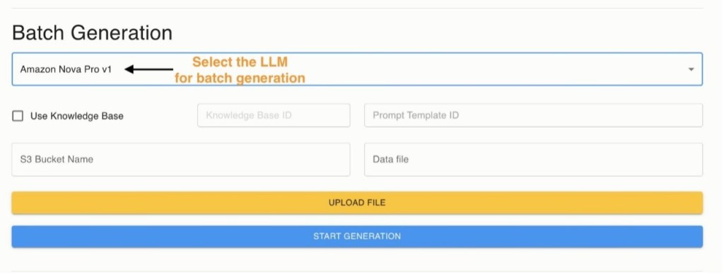 - Để chạy batch generation, chọn mô hình từ menu dropdown list.