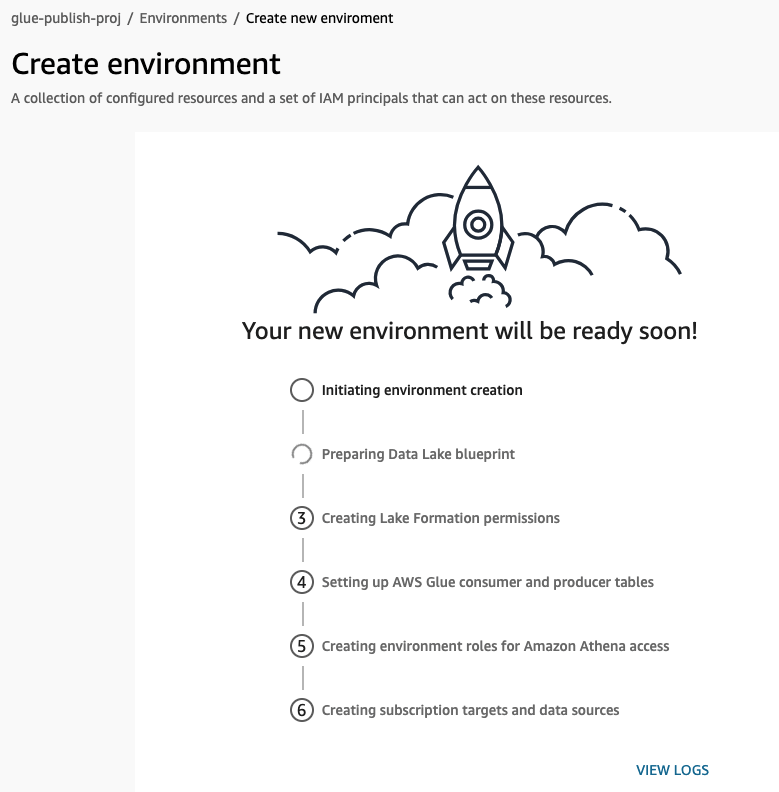 - Trong cùng miền Amazon DataZone demo_cross_account_domain, chọn Browse Project và chọn Glue_Publish_Project và tạo Glue_Publish_Environment bằng cách sử dụng DataLakeProfile mặc định.