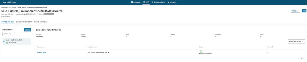 Glue_Publish_Projectđể xuất bản tài sản dữ liệu AWS Glue và tạo dự án dưới demo_cross_account_domain.
