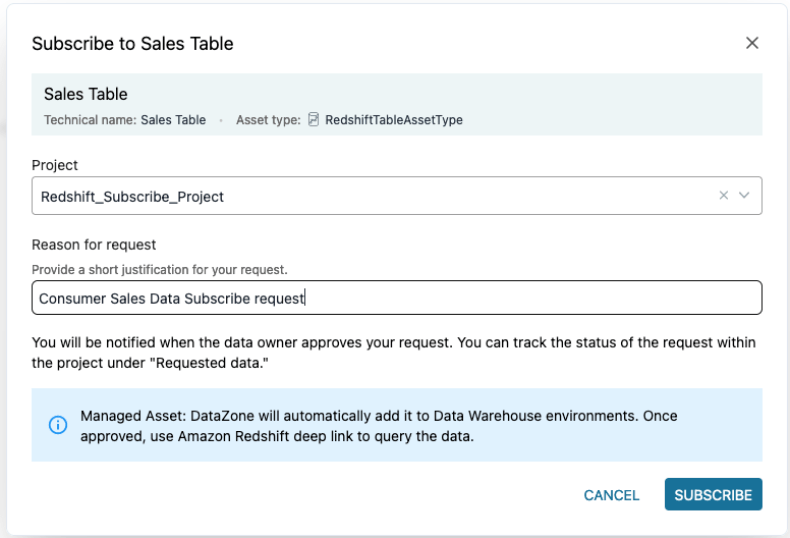 Redshift_Subscribe_Projectđể đăng ký các tài sản dữ liệu Redshift.