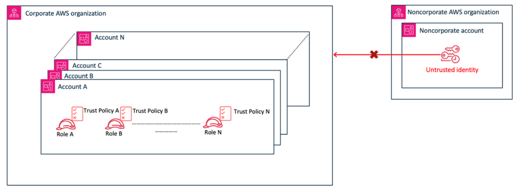 Để biết thêm các trường hợp sử dụng và các loại kiểm soát có thể được triển khai bằng RCP, bạn có thể khám phá kho lưu trữ ví dụ về chính sách kiểm soát tài nguyên. Trong bài viết này, chúng tôi trình bày cách giúp đảm bảo rằng chỉ các danh tính đáng tin cậy mới có thể truy cập các IAM role của AWS Identity and Access Management (IAM) của bạn.