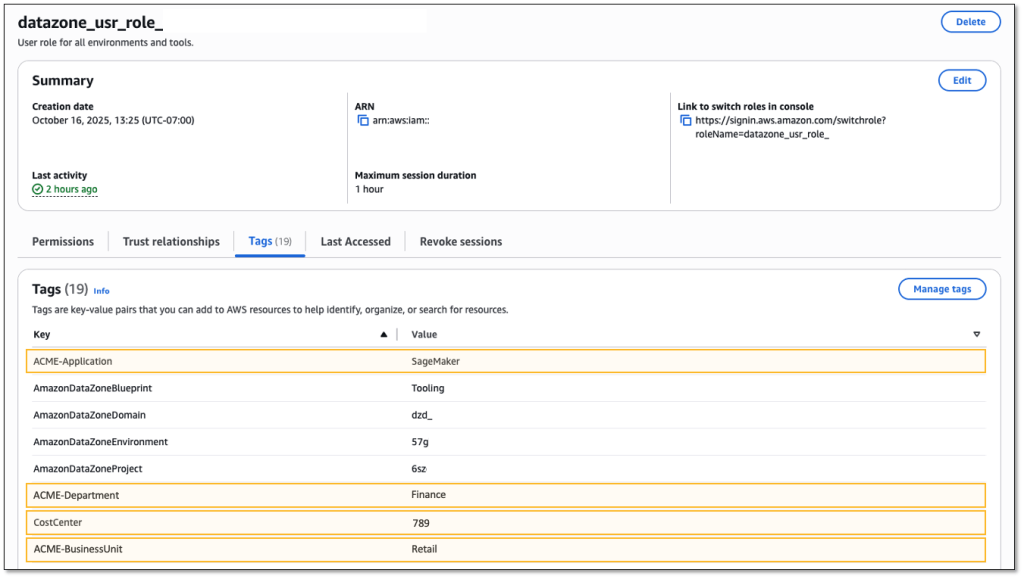 datazone_usr_role_. - Mở bảng điều khiển IAM.