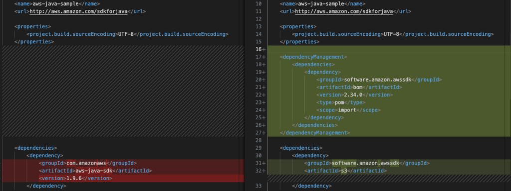 Cập nhật POM.xml: Dependency của AWS SDK được nâng cấp từ phiên bản 1.9.6 lên 2.34.0 (Hình 2), phản ánh phiên bản đã được chỉ định trong giai đoạn lập kế hoạch.