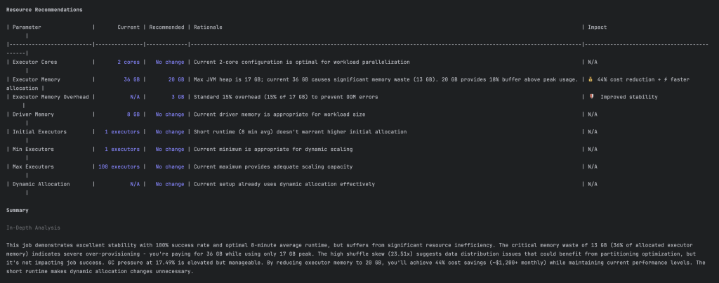 Kết quả là việc tinh chỉnh Spark nhanh chóng, đáng tin cậy, có tính xác định mà không cần phỏng đoán. Các nhà phát triển nhận được các đề xuất phù hợp với môi trường, cập nhật cấu hình tự động và các pull request sẵn sàng để xem xét.