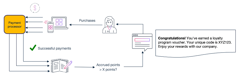 Các chương trình khách hàng thân thiết hướng sự kiện giải quyết thách thức này bằng cách phản ứng tức thì với các sự kiện của bộ xử lý thanh toán. Sau một giao dịch thành công, sự kiện thanh toán ngay lập tức kích hoạt tính toán khách hàng thân thiết, đánh giá tiến trình cấp bậc và gửi thông tin liên lạc được cá nhân hóa. Cách tiếp cận thời gian thực này cho phép các nhà bán lẻ cung cấp sự công nhận phần thưởng kịp thời và tạo ra trải nghiệm khách hàng hấp dẫn nhằm thúc đẩy việc mua hàng lặp lại.
