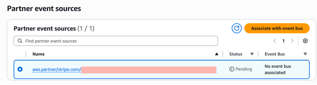 aws.partner/stripe.com/{UNIQUE_ID}. Chọn Associate with event bus.