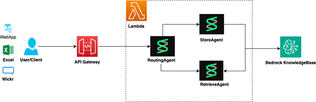 Trí thông minh cốt lõi của hệ thống nằm ở lớp tác nhân, được xây dựng bằng framework Strands Agents, một SDK điều phối đa tác nhân mã nguồn mở. Lớp này triển khai ba tác nhân AI chuyên biệt hoạt động cộng tác: tác nhân định tuyến, tác nhân truy xuất và tác nhân lưu trữ.