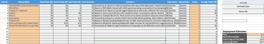 Khi sử dụng Excel, bạn có thể nhập mô tả tự do về thiết bị vào một ô, sau đó chọn một nút để truy xuất phân tích của tác nhân AI. Ngoài ra, bạn có thể mô tả thiết bị và các yêu cầu năng lượng của nó và lưu trữ chúng.