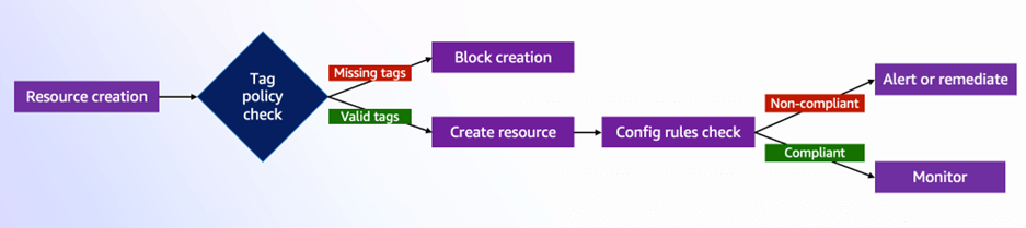 Mặc dù các chính sách thẻ của AWS Organizations cung cấp nền tảng cho việc gắn thẻ nhất quán, quản trị thẻ toàn diện yêu cầu các cơ chế thực thi bổ sung, mà chúng tôi sẽ khám phá chi tiết trong Phần 2.