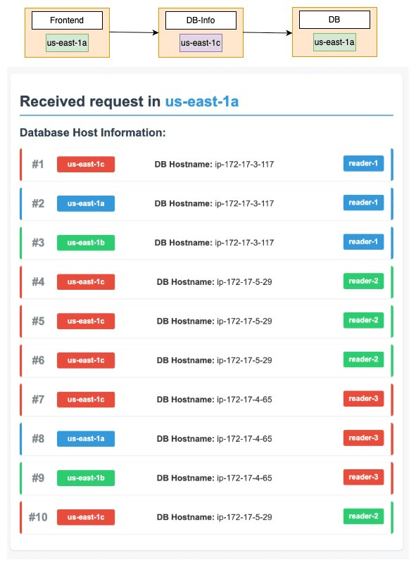 - Đối với mỗi cuộc gọi, nó hiển thị Availability Zone mà Dịch vụ DB-Info đã phản hồi