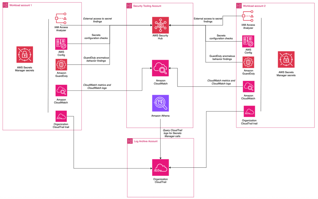Mặc dù có những lợi thế khi tập trung hóa bí mật để giám sát và khả năng quan sát, nhiều khách hàng đã dựa vào các dịch vụ như AWS Security Hub, IAM Access Analyzer, AWS Config và Amazon CloudWatch để có khả năng quan sát đa tài khoản. Các dịch vụ này giúp dễ dàng tạo các chế độ xem tập trung về bí mật trong môi trường đa tài khoản.