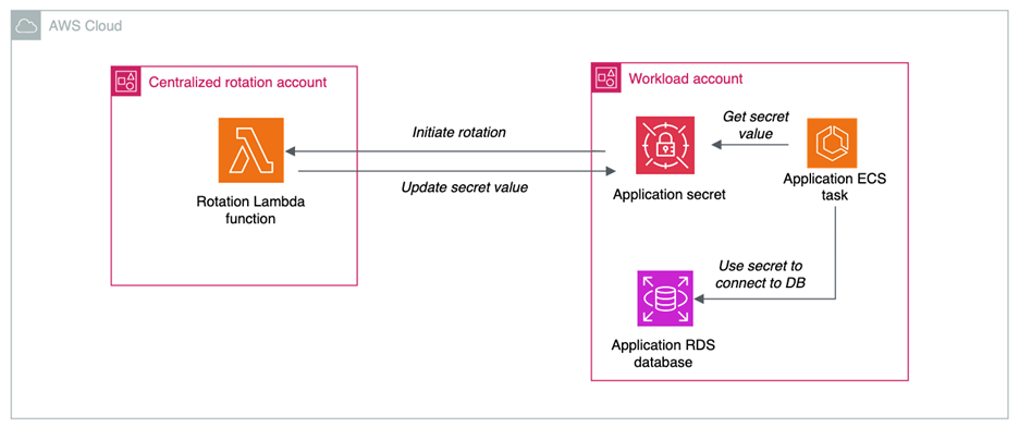 - Các kịch bản truy cập đa tài khoản bổ sung: Khi tập trung hóa quản lý vòng đời, các chức năng Lambda trong các tài khoản trung tâm yêu cầu quyền để tạo, cập nhật, xóa và đọc bí mật trong các tài khoản ứng dụng. Điều này làm tăng chi phí vận hành cần thiết để kích hoạt xoay vòng bí mật.