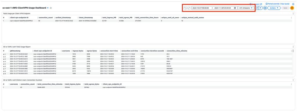 Quyền riêng tư dữ liệu: Bảng điều khiển và các truy vấn có thể chứa thông tin nhạy cảm về các mẫu sử dụng VPN và danh tính người dùng. Triển khai các biện pháp kiểm soát thích hợp để bảo vệ dữ liệu này:
