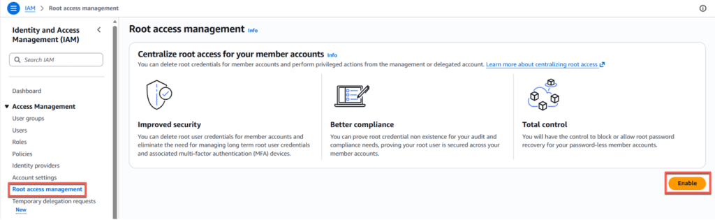 iam:EnableOrganizationsRootCredentialsManagement
