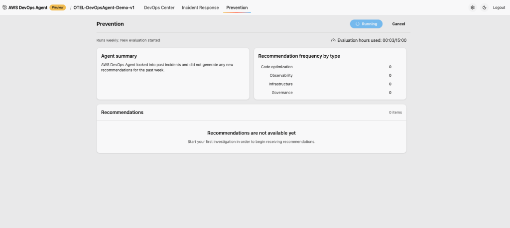 Hình 16: Ảnh chụp màn hình tab phòng ngừa trong AWS Console cho AWS DevOps Agent